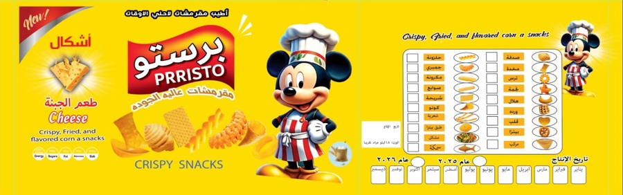 جميع انواع المقرمشات واشكالها النكهات كاتشب، شطه ، جبنه ،فلفل حلو ،خضار ،خلطه سريه ،جبنه متبله ،خل وملح ،ليمون حلو اسماء المنتجات برستو ،،،،،روز،،،،،سنابل الخير